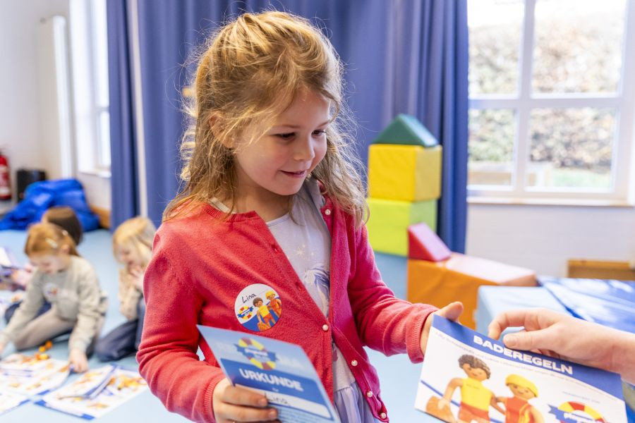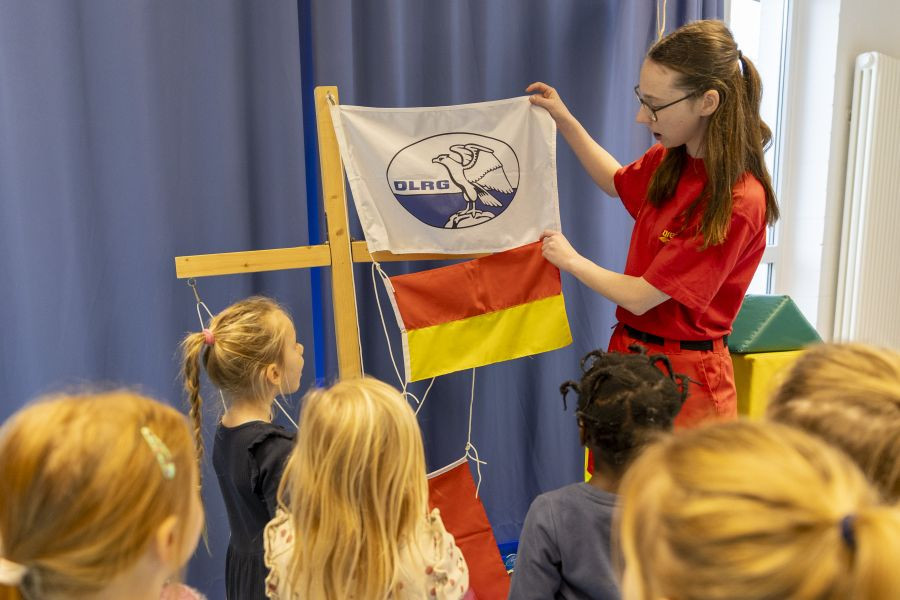 Wenn du dir für deine Vorschulgruppe oder deine Schulklasse auch einen Besuch der Rettungsschwimmer*innen zu den Baderegeln wünschst, frag einfach bei einer DLRG-Ortsgruppe in deiner Nähe nach.